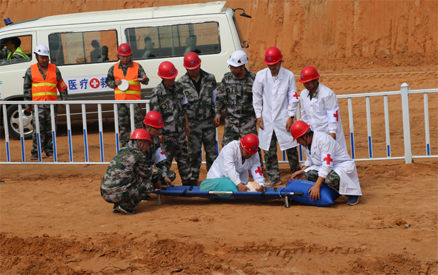 本次應(yīng)急演練模擬施工現(xiàn)場發(fā)生土方坍塌后的應(yīng)急救援展開,主要設(shè)置了險情報告、應(yīng)急指揮、啟動預(yù)案、現(xiàn)場搶救、緊急疏散、排查危險、醫(yī)療救護、交通疏導(dǎo)、調(diào)查取證、維護秩序、善后處理等應(yīng)急處置場景。演練場景逼真、科目齊全、參演人員精神飽滿、響應(yīng)快速、處置合理,按照既定預(yù)案程序完成了全部演練任務(wù),達到了演練的預(yù)期目標,得到了現(xiàn)場觀摩領(lǐng)導(dǎo)的高度評價。