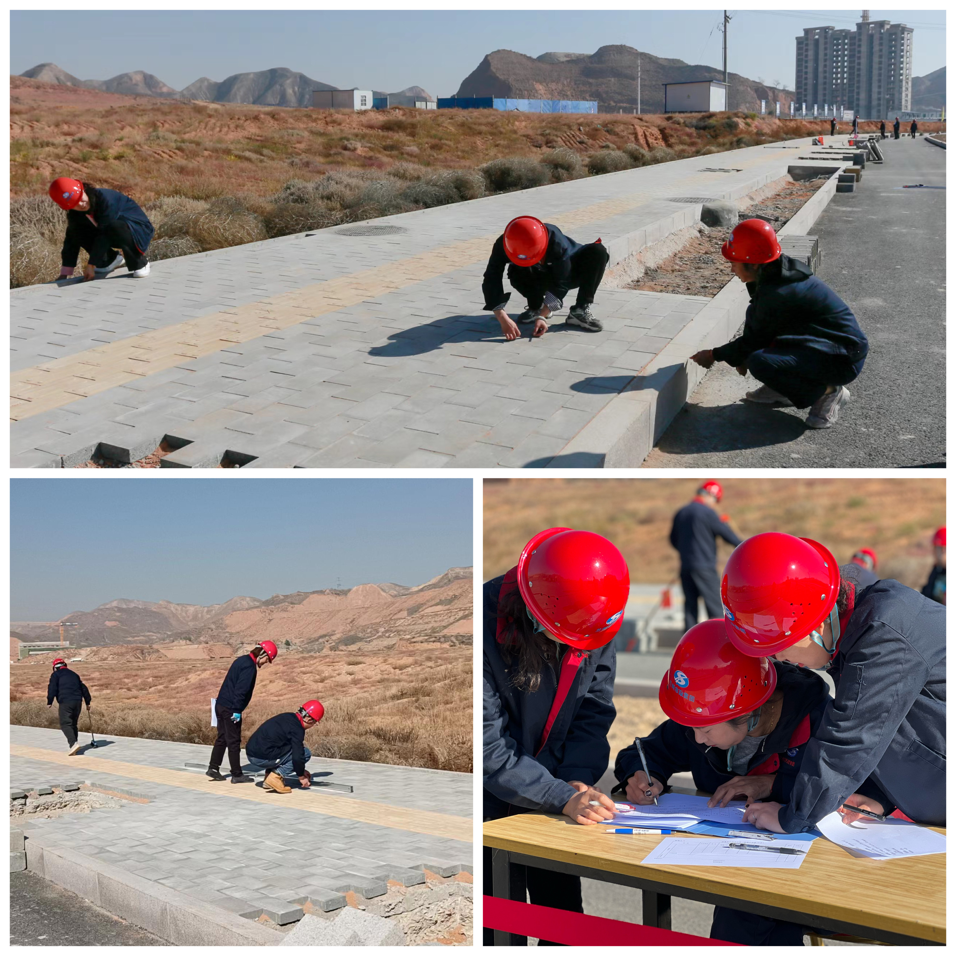你方唱罷我登場(chǎng),質(zhì)量崗位比武,分為理論和實(shí)操兩部分,各參賽選手拿到分項(xiàng)工程應(yīng)檢測(cè)的項(xiàng)目?jī)?nèi)容表格以及質(zhì)檢資料樣表后,個(gè)個(gè)全神貫注、胸有成竹,力爭(zhēng)在限定時(shí)間內(nèi)完成。實(shí)操部分主要是對(duì)現(xiàn)場(chǎng)人行道及路緣石的平整度、直順度等實(shí)體質(zhì)量和外觀質(zhì)量進(jìn)行檢查,各選手按步驟邊測(cè)量邊記錄,環(huán)環(huán)相扣,一絲不茍,按照規(guī)范對(duì)分項(xiàng)工程的外觀進(jìn)行仔細(xì)檢測(cè),認(rèn)真評(píng)定,確保工程不留瑕疵。