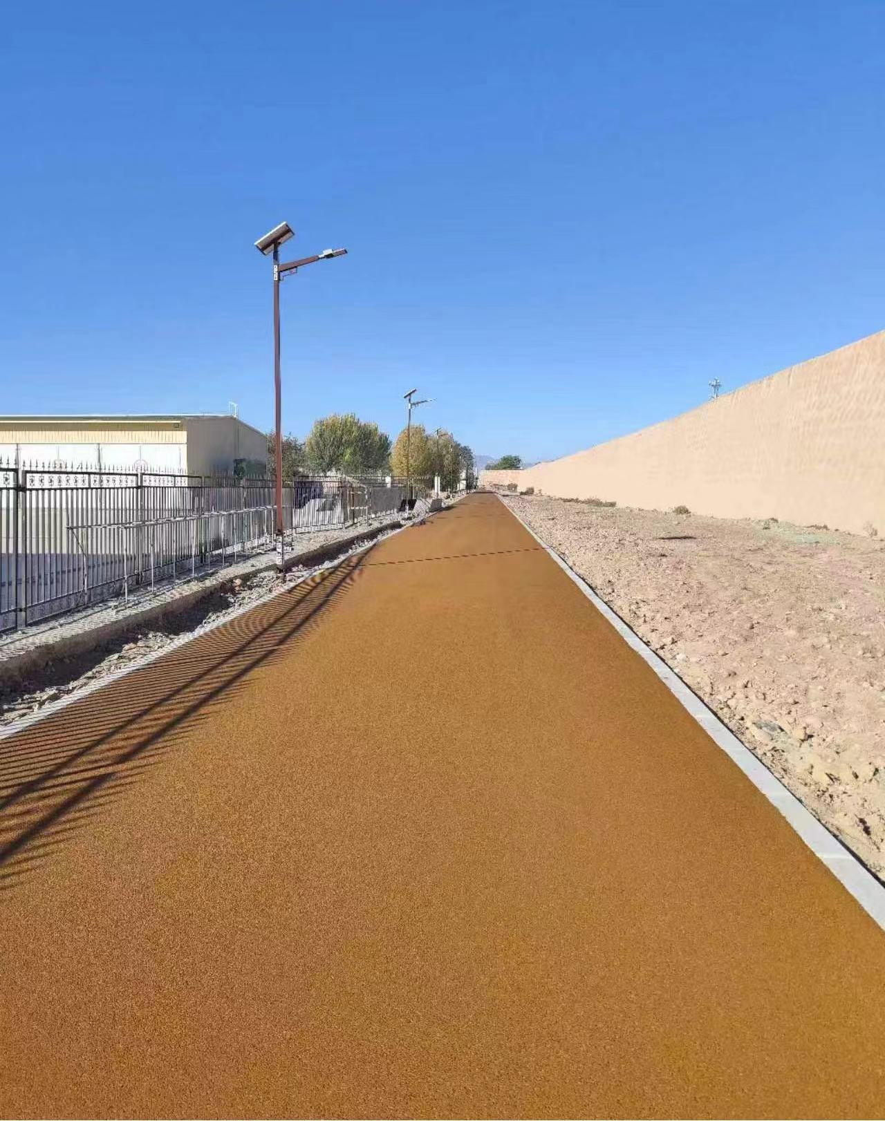 由道面工程公司參建的武威滿(mǎn)城環(huán)境整治工程彩色瀝青面層鋪筑工程位于武威市涼州區(qū),整條道路繞城墻內(nèi)側(cè)一周,線路全長(zhǎng)4030m。在鋪筑過(guò)程中,項(xiàng)目部克服氣溫下降、工期緊張、材料運(yùn)距較遠(yuǎn)等困難,精心組織,合理安排,積極與當(dāng)?shù)氐臑r青混凝土拌合站溝通協(xié)調(diào),解決了及時(shí)出料、運(yùn)料的問(wèn)題。派專(zhuān)人入駐拌合站,協(xié)同生產(chǎn),對(duì)瀝青混合料的配合比實(shí)時(shí)把關(guān),保證出料質(zhì)量?,F(xiàn)場(chǎng)施工人員每天早晨七點(diǎn)到位,各司其職,項(xiàng)目管理人員全程把控每一道工序?qū)?yīng)的每一個(gè)技術(shù)標(biāo)準(zhǔn),確保施工安全、工程質(zhì)量受控。目前,彩色瀝青面層鋪筑工作已經(jīng)完成,已成為滿(mǎn)城一道靚麗的風(fēng)景線。